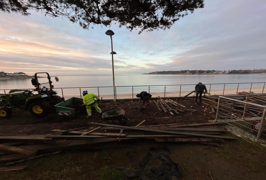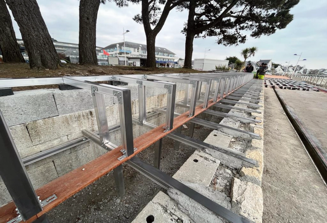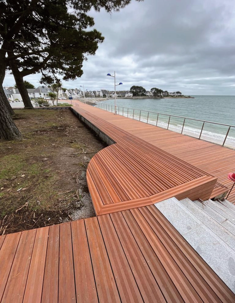 Les habitants et les visiteurs de Bénodet peuvent maintenant profiter d’une toute nouvelle expérience de promenade sur la Corniche de l’Estuaire. La première phase du chantier de renouvellement du platelage, qui a débuté en février, a été achevée en avril. Ces travaux d’envergure, s’étendant de l’esplanade du Casino jusqu’au restaurant Sans-Souci, concernent la partie sud de la Corniche, côté mer, sur une superficie de 1 600 m².